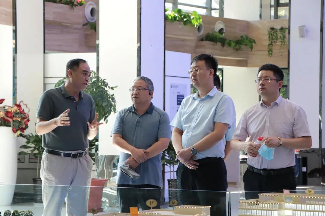 在科技園成果展示大廳,宋驥向馬行裕一行介紹了園區(qū)的發(fā)展規(guī)劃、產(chǎn)業(yè)定位、運(yùn)營機(jī)制、區(qū)位概況等情況