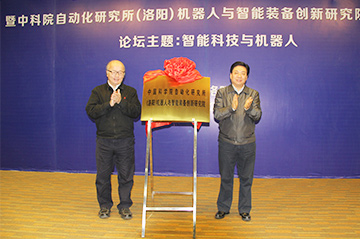 12月18日,2014年第三屆中國洛陽機器人產業發展論壇在洛陽國家大學科技園舉行,同期,中科院自動化研究所(洛陽)機器人與智能裝備創新研究院正式揭牌。中科院自動化所領導、洛陽市領導、市直相關委局和相關縣區領導,部分縣區科技局負責人,洛陽機器人與智能裝備聯盟成員單位負責人及技術副總、洛陽市機器人及智能裝備相關企業主要負責人及技術副總,河南科技大學、洛陽師范學院、洛陽理工學院相關院系師生、洛陽市新聞單位記者等300多人參加了本次活動。
