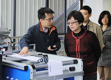 在張衡園3#-1樓1樓中科院自動化所(洛陽)機器人與智能裝備創新研究院中試車間,郝銀星向黃布毅書記一行全方面演示了創新研究院與當地企業合作研發的產品——數字印刷、工業機器人焊接系統等。