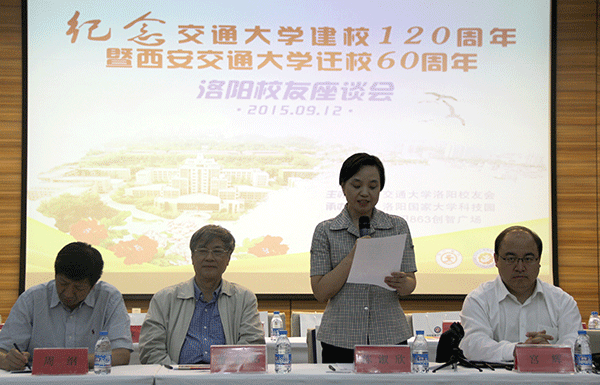 白發蒼蒼的老學姐,步履蹣跚的老學長,兒女繞膝的大師兄,青春陽光的小師妹……9月12日上午,在洛陽國家大學科技園多功能會議廳,洛陽市副市長陳淑欣、西安交通大學副書記宮輝等領導,以及在洛陽工作和定居的120多名上海交通大學、西安交通大學、西南交通大學等校友歡聚一堂舉行座談會,共同慶祝交通大學建校120周年暨西安交通大學遷校60周年。