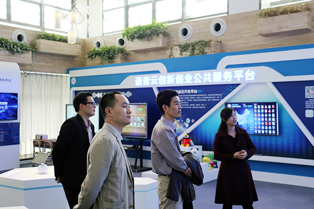 在科大訊飛的語音云創新創業公共服務平臺,余孔一行現場體驗了科大訊飛研發的多語種智能口語測評系統、暢言系列教育產品、智能語音家居等系列產品。