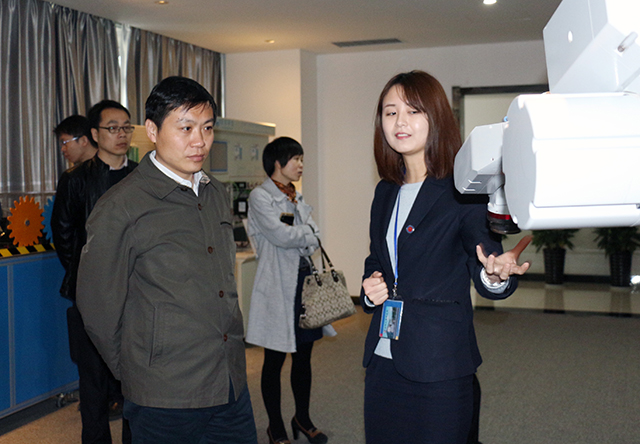 在張衡園1號樓展示中心,園區負責人向高義一行全面匯報了園區規劃、產業定位、運營機制、公共服務平臺、入園企業構成、企業孵化成果等,并陪同高義一行參觀了智能裝備及工業機器人體驗中心。