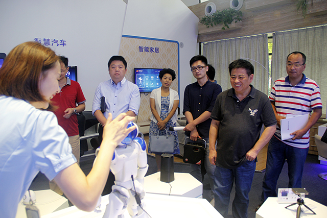 在科大訊飛的語音云創(chuàng)新創(chuàng)業(yè)公共服務(wù)平臺,唐德根一行現(xiàn)場體驗了科大訊飛研發(fā)的多語種智能口語測評系統(tǒng)、智能語音家居等系列產(chǎn)品,個性化的語音識別、秒變文字的智能輸入、隨叫隨到的語音喚醒、能說能聽能跳的語音極其人、一站式控制的智能家居等科技成果演示,獲得了考察團的不斷稱贊。
